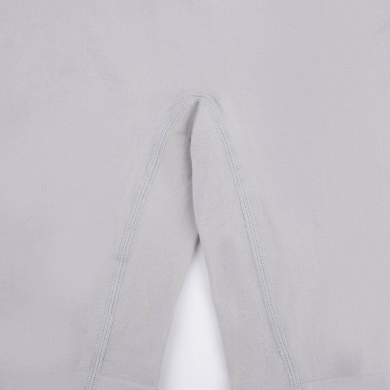 We don’t use silicone grippers or pinchy elastics, and the fabric lays flat against your skin without squeezing.