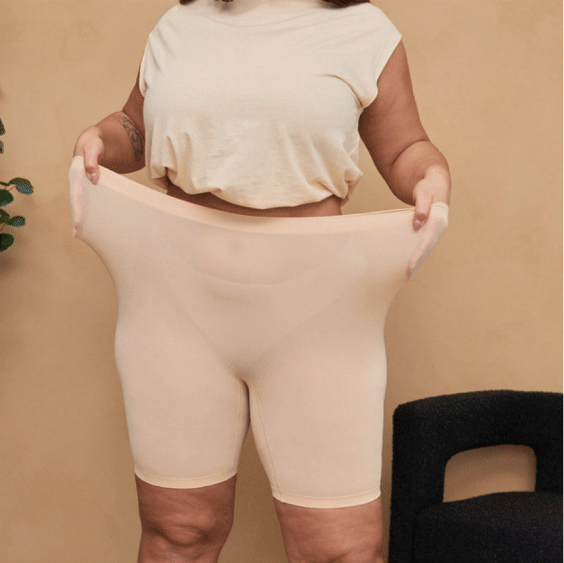Thigh Society shorties don’t compress you or suck you in like shapewear does. Instead, they’re a lightly smoothing, breathable, sweat-wicking essential you’ll reach for again and again. They’re so comfy that you’ll probably forget you have them on, and may want to sleep in them (said no one ever about shapewear).